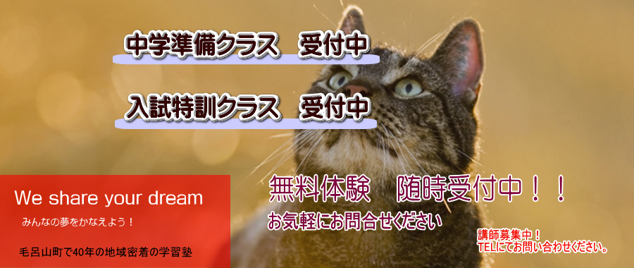 3月から新学年の学習が始まります。塾を探している生徒や保護者の方は是非2月中にお問い合わせください。無料体験もできます。グループ授業・個別授業も選べます。